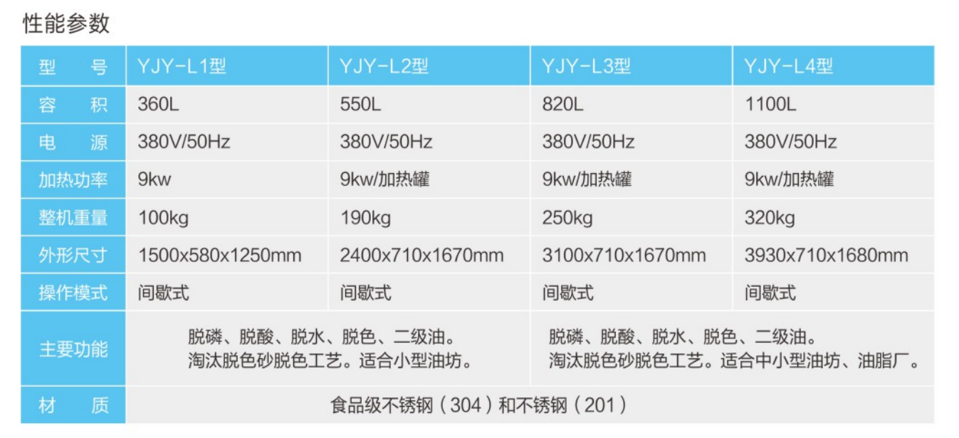 ★采用不銹鋼材質,可實現(xiàn)油品的脫磷、脫酸、脫水功能,根據(jù)用戶需要還可以進行恒溫脫色。